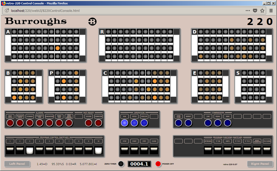 In the retro-220 emulator, the main panel looks like this:
